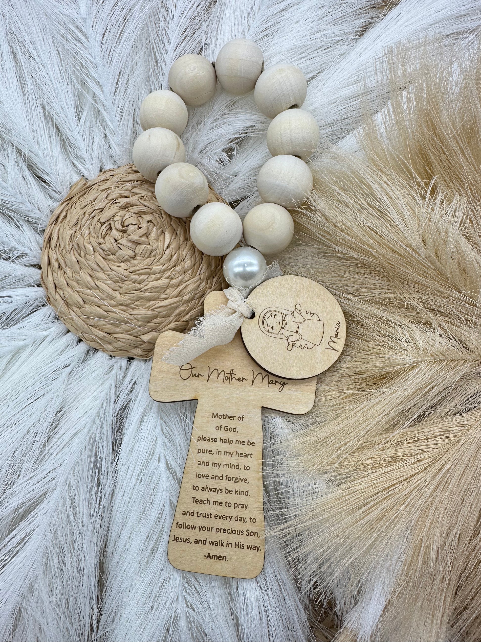Our Mother Mary Wood Bead Decade Rosary: Catholic Prayer Beads | Baptism Gift