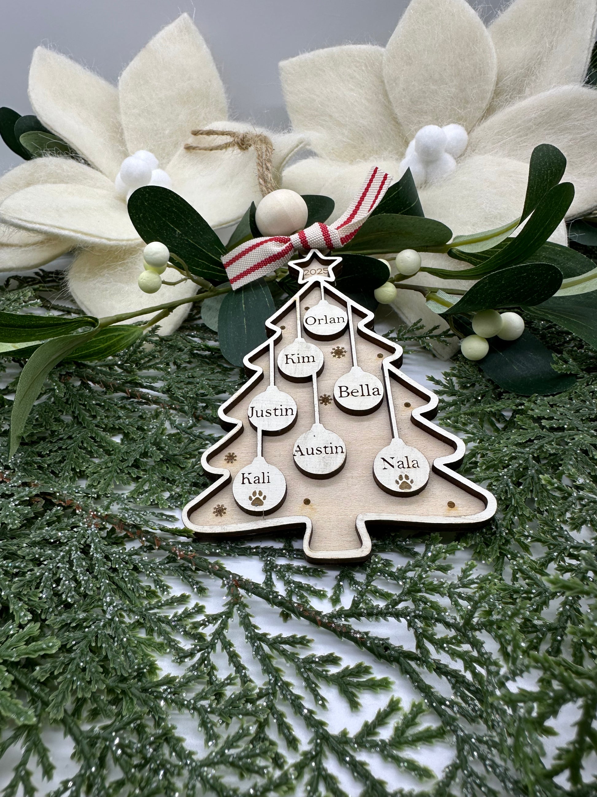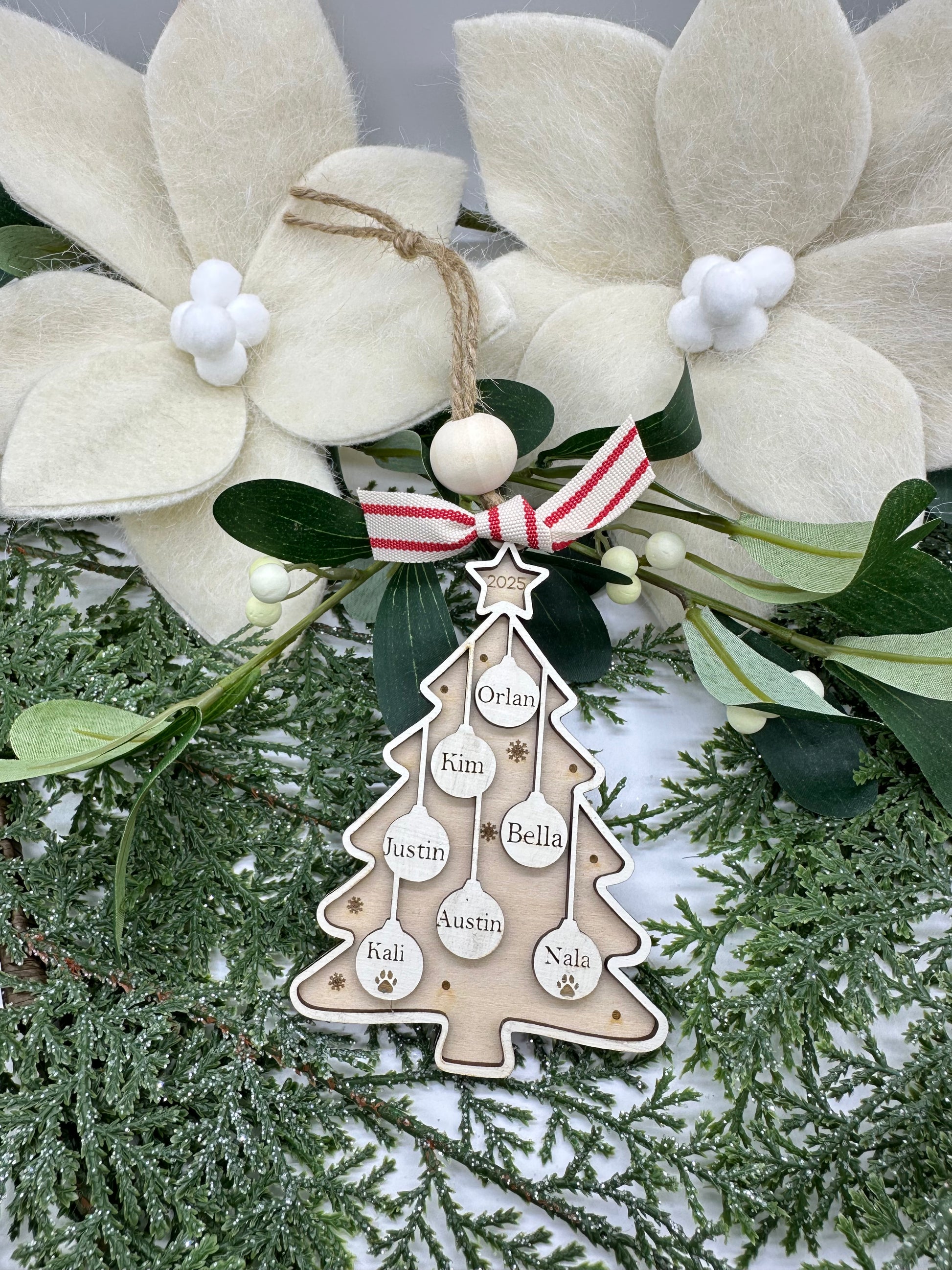 Personalized Rustic Wood Christmas Tree Ornament | Custom Family Name Holiday Decoration | Handmade Wooden Xmas Keepsake