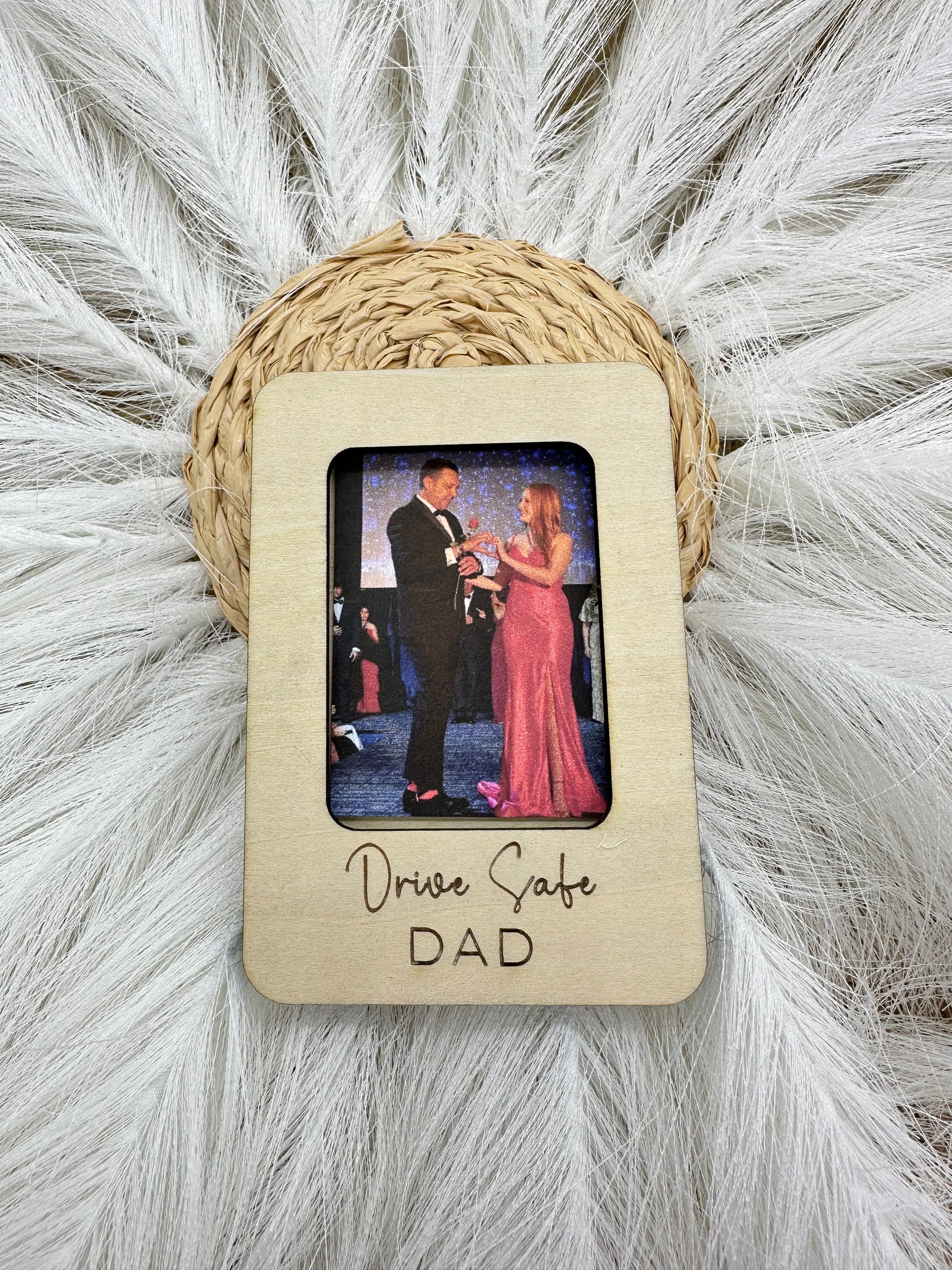 Wallet Size Instant Photo Frame Magnet | Personalized Engraved Mini Wooden Photo Frame | Wedding Favor, Graduation Gift, Drive Safe Frame