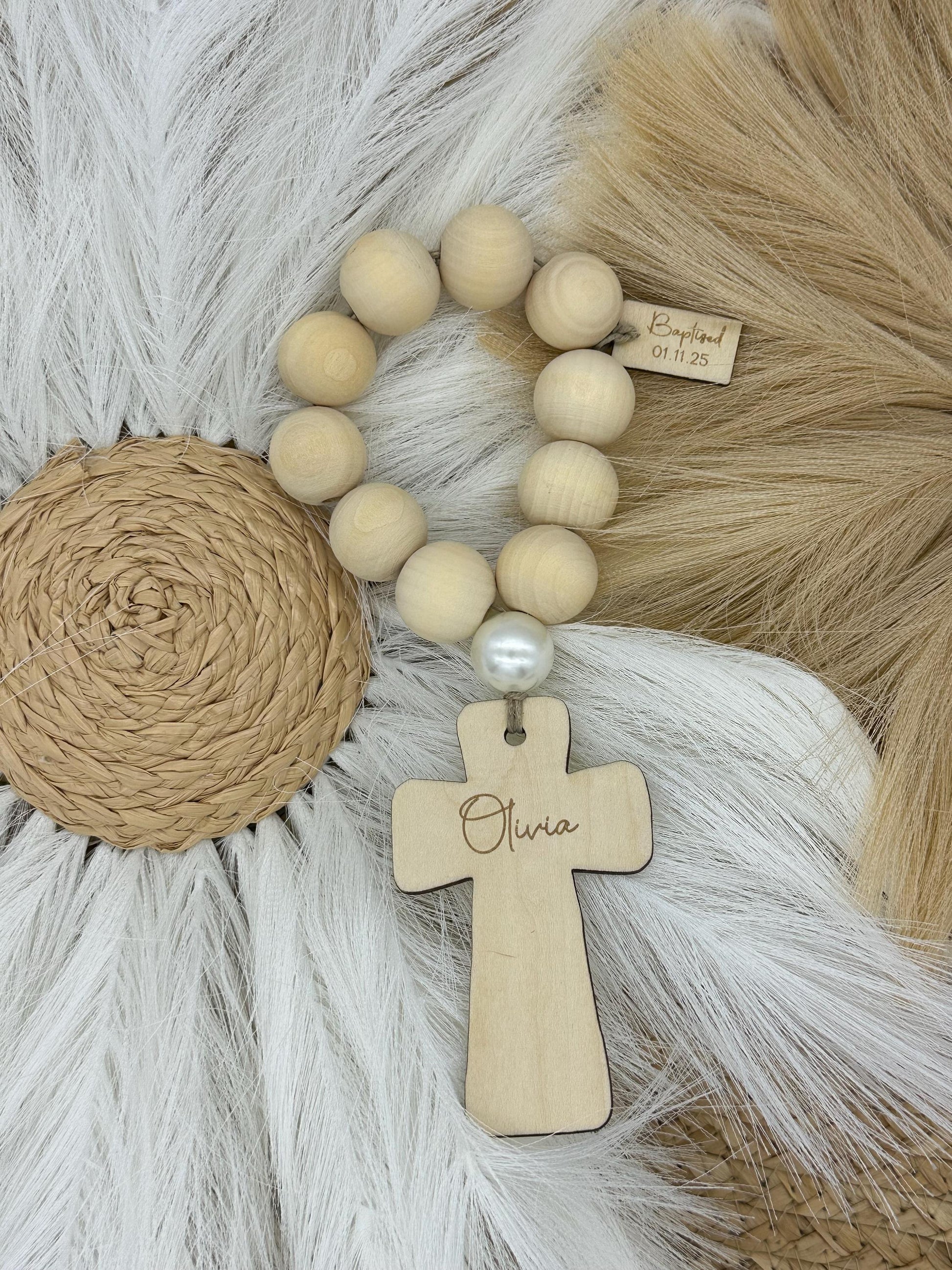 Personalized Wood Bead Rosary | Baptism, First Communion & Confirmation Favors